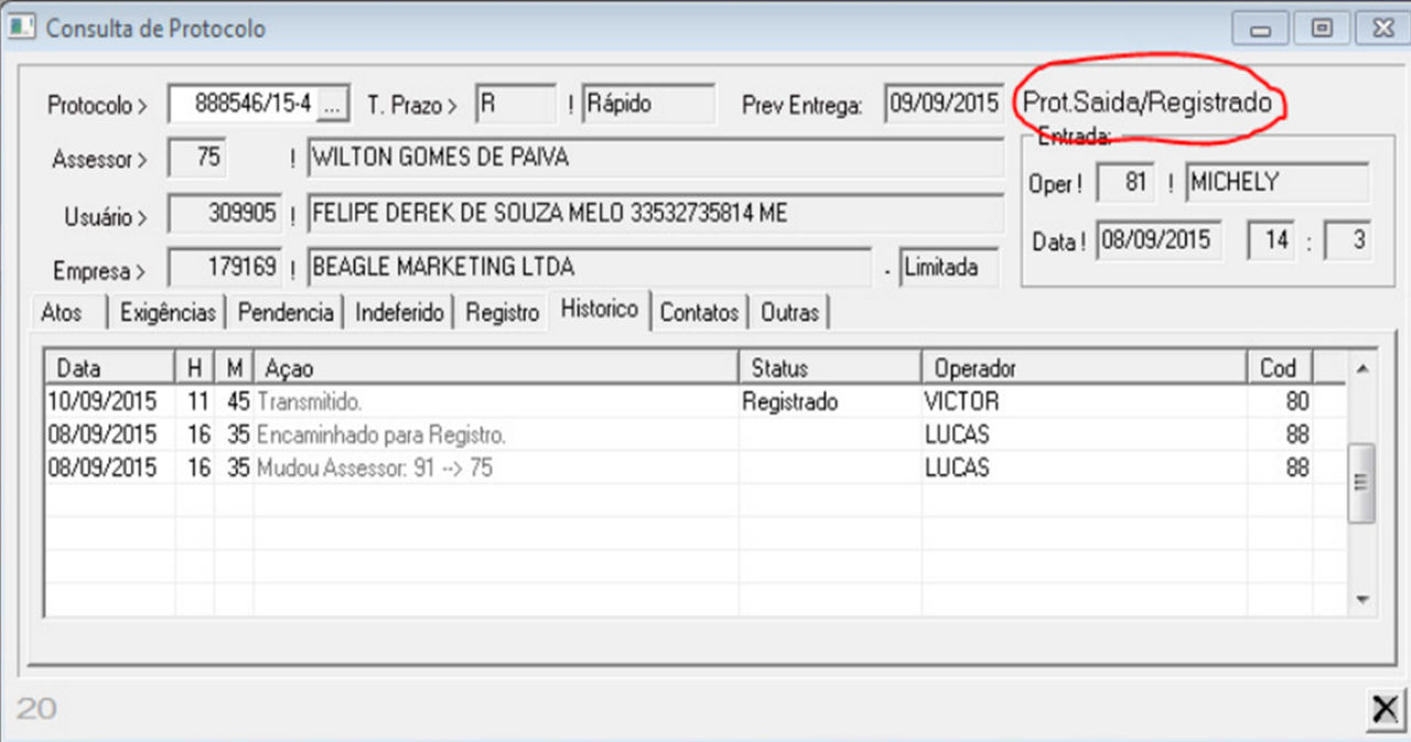 Página inicial > Escritório Junta Comercial / Consulta de protocolo > Protocolo de saída/Registrado (deferido)