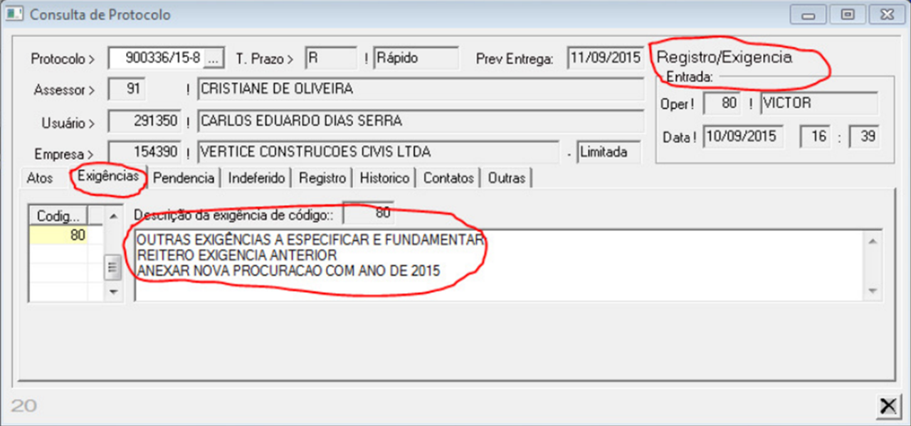 Registro/Exigência